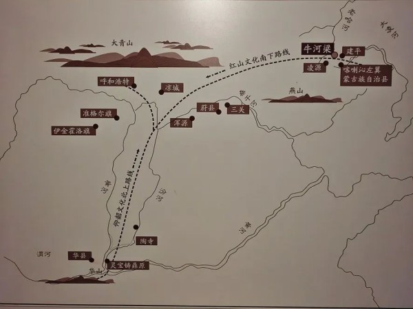 具体说来,华山脚下的玫瑰与燕山以北的龙的中间对接点在桑干河上游(河北省、山西省北部)一带。出土文物证明,两者真正结合到一起的证据发现在大凌河上游、辽河的凌源、建平、喀左一带,时间距今5000年—5500年。