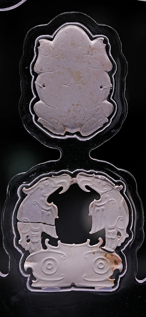 湖南省文物考古研究院藏 双鹰神面玉饰(下)湖北天门石家河遗址谭家岭8号瓮棺出土 天门市博物馆藏 图/艺度