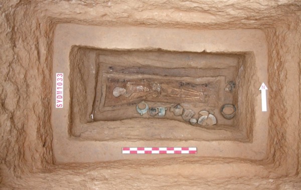 葬具为一棺一椁,木质腐朽,仅存灰痕。墓主葬式为仰身直肢。头向西,面向北。双手置于骨盆上,不交叉。双足并拢。墓主为一女性,年龄31-34岁。