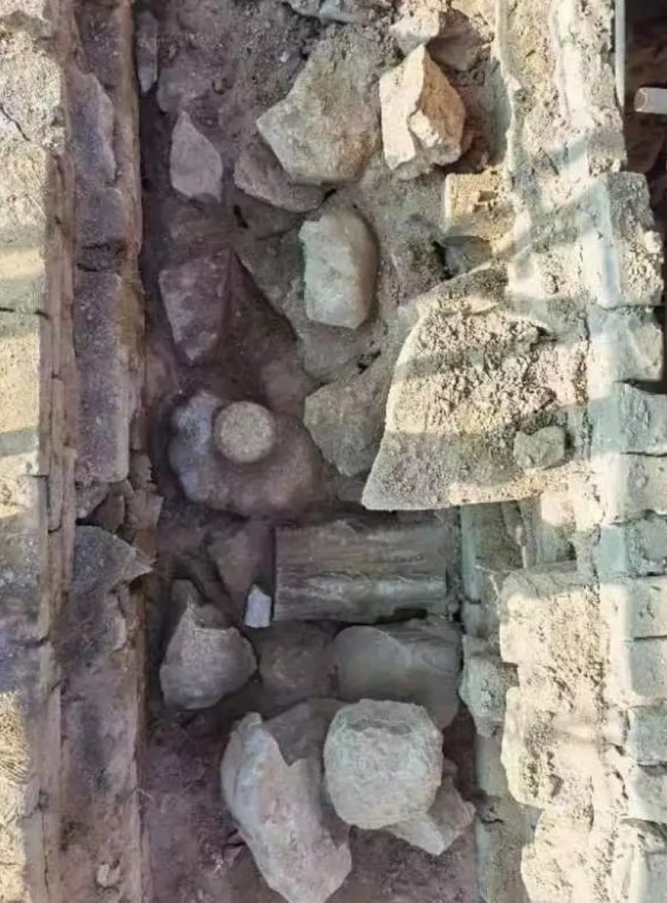 龙门石窟东山擂鼓台南洞前壁(西墙)由石块、青砖垒砌而成,宽约1.3米。在墙的内部填土中,发现有遗物填充,经逐层清理出土有砖、陶质遗物100余件,其中编号的石造像残件80余件、门砧石1对、陶质脊兽残件数件。以洞窟窟门为界,门南侧夹墙中出土遗物56件,北侧夹墙中出土遗物28件,初步观察多数造像残件可以拼对修复。经清理,这些遗物逐层摆放,垒砌于墙内。