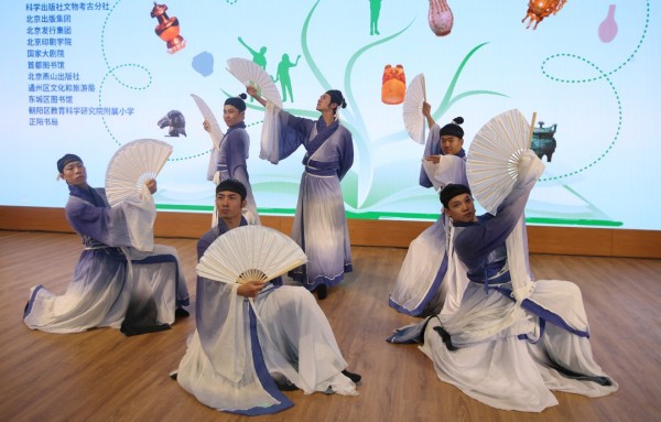中央民族大学学生带来的中国古典舞《纸扇书生》。