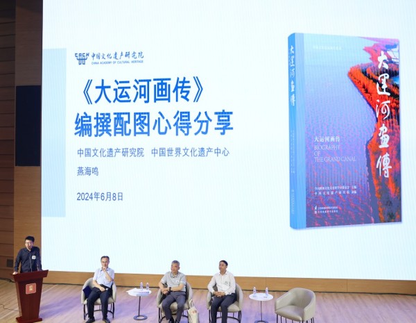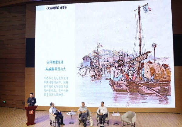 启动仪式后,《大运河画传》主创团队与现场观众开启了一场分享会,中国博物馆协会理事长刘曙光、中国文化遗产研究院党委副书记、副院长李向东和撰稿人燕海鸣研究员对《大运河画传》的创作过程进行了分享。