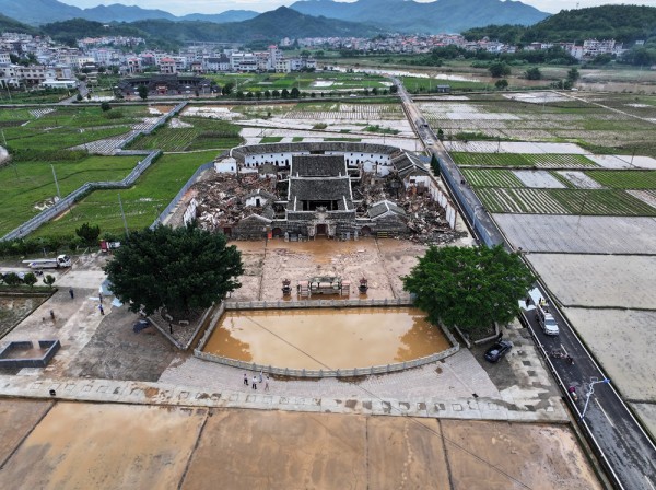 “客家第一祠”福建省龙岩市上杭县官田李氏大宗祠受特大暴雨袭击,发生大面积坍塌。