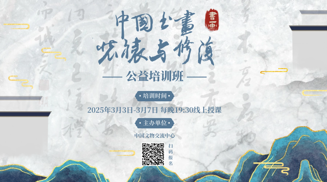 为全面落实《关于推动新时代文物职业教育改革发展的实施意见》,促进修复人才培养,由中国文物交流中心主办的“中国书画装裱与修复公益培训班”拟于2025年3月3日至3月7日线上举办。