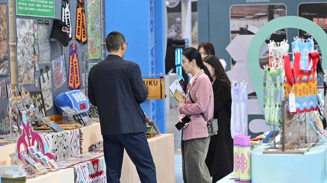 工作人员为嘉宾介绍文创产品