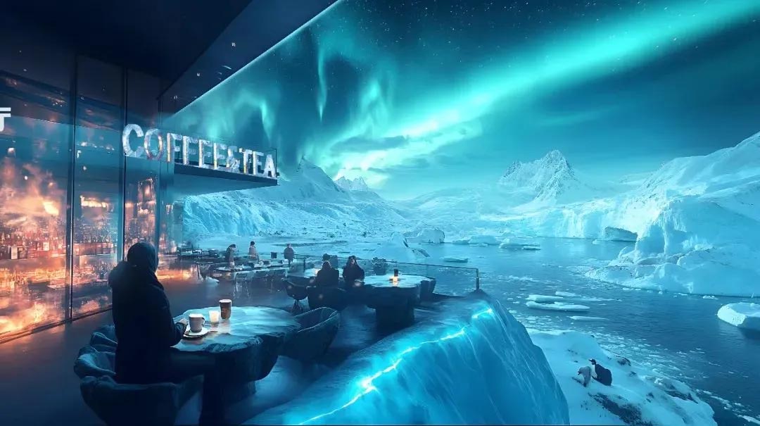 “极宝藏宝阁”文创摒弃常规纪念品,收藏了极宝全球最有价值的关于南北极文创爱物,游客在挑选文创时,实则是收藏了一份极地的守护和责任,让消费行为成为极地故事的情感载体;“极宝能量站” 打造全国首个网红打卡极光主题咖啡厅,以多维度感官重构餐饮体验,当 "极光特饮" 在玻璃杯中流转,清凉触感唤醒味蕾,穹顶巨幕投射的极光照亮云雾缭绕的空间,游客仿佛置身于纯净的极地冰原,原生感场景与味觉体验形成沉浸式松弛感场域