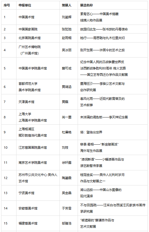 ■ 文化和旅游部办公厅关于公布2025年全国美术馆青年策展人扶持计划初评入选项目名单的通知