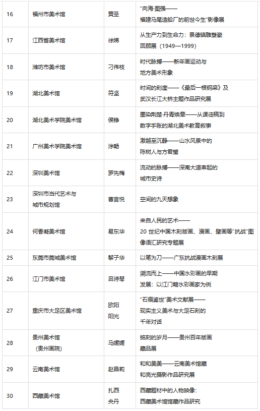 日前,文化和旅游部官网发布《文化和旅游部办公厅关于公布2025年全国美术馆青年策展人扶持计划初评入选项目名单的通知》。共有30个项目通过2025年全国美术馆青年策展人扶持计划初评。