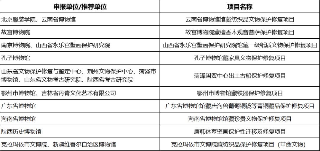 2024全国文物修复案例宣传展示活动十佳项目名单(按行政区划排序)