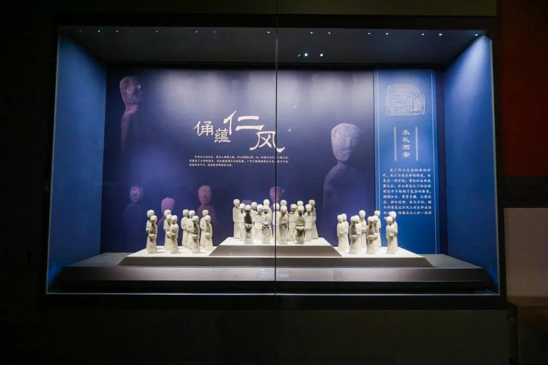 “长乐未央”部分设“礼乐飨宴”“玉饰服章”双主题,采用主题陈列的手法,精心设置复原场景,让观众仿若穿越千年,身临其境地感受汉家日常、衣食住行。广阳国所属的幽燕之地依山带海,物产丰富,为农耕文明的进步提供了条件。随着手工业的发展和贸易的兴盛,蓟城成为两汉时期北方地区的重要经济都会。在物质基础充裕与礼乐文化兴盛的大背景下,该部分通过丰富的陈列展示,生动描绘出汉代蓟城丰富多彩的社会生活图景。