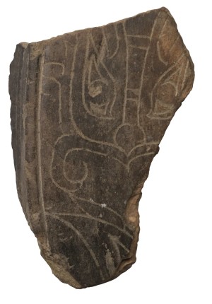 河南新密新砦遗址是探索早期夏文化的重要遗址。其出土的陶器盖(图1)残片上阴刻有龙纹,方头和“臣”字目的形态与二里头遗址出土绿松石龙有相似之处,应为其最直接的渊源或祖型。