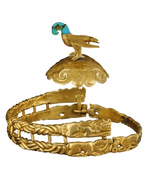 此时的龙还受到了北方草原地带人群的喜爱。内蒙古杭锦旗阿鲁柴登墓葬出土有一件金冠饰(图6),是游牧部落首领的饰物。冠饰由冠顶和冠带组成,冠顶浮雕有四狼吃羊的图案,中央为立鹰;冠带装饰有卧羊、卧马和龙,龙首似狼似虎,具有鲜明的草原文化风格。