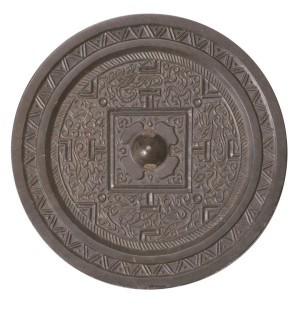 同时,“四神”概念在汉代也已定型,“苍龙连蜷于左,白虎猛踞于右,朱雀奋翼于前,灵龟圈首于后”成为定制。汉长安城发现有多件四神瓦当,其中青龙瓦当(图7)的龙形态呈奔走状,矫健有力。云南罗平汉墓出土的博局纹铜镜(图8)也饰有“四神”,并搭配羽人、凤鸟等纹饰,反映了中原文化对西南地区的影响。