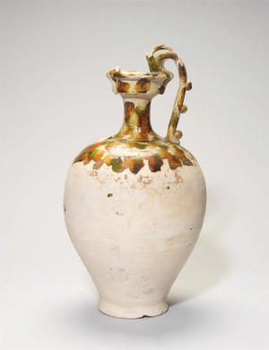 河南偃师杏园唐墓中出土的三彩龙柄壶(图10)盛行于初唐和盛唐时期,多见于西安和洛阳地区。龙形柄细长,龙嘴衔于壶口,线条优美流畅,一方面承袭了西晋以后鸡首壶的传统,另一方面则反映出罗马和波斯文化的影响,体现了多种文化因素的交融和互鉴。金质龙纹马鞍饰出土于青海都兰热水墓群2018血渭一号墓。器身上捶揲有多种动植物纹样,其中右侧的主体纹样为一立龙,龙身修长,龙首昂起,口吐云气。2018血渭一号墓的墓主可能是吐谷浑王莫贺吐浑可汗,这件精美的马鞍饰既是吐谷浑王陵的等级标志,也是丝绸之路青海道的历史见证。