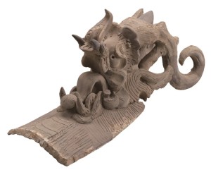宋代是我国古代文化艺术的一个发展高峰,龙的形态在此时基本定型。南宋《尔雅翼》记载,龙“有三停九似之说,谓自首至膊,膊至腰,腰至尾,皆相停也。九似者,角似鹿,头似驼,眼似兔,颈似蛇,腹似蜃,鳞似鱼,爪似鹰,掌似虎,耳似牛”,即为后世常见的龙的形象。宋代的龙纹洗练洒脱,刻画细腻,常穿插于祥云、海浪、花草之间,上下翻腾,富于变化,与当时的审美意趣相契合。南宋陈容的《九龙图》将九条姿态各异的龙绘于险山云雾、巨浪潮水中,遨游追逐,或隐或现。其精湛多变的笔法、错落有致的构图、生动传神的情态刻画将这一时期龙的特点表现得淋漓尽致,成为后世的典范。河南洛阳宋园遗址出土有一件陶龙形脊饰(图11),细长纤秀,形象华丽,是高等级建筑的象征。辽、金、西夏则基本沿用唐代龙的形象。内蒙古赤峰阿鲁科尔沁旗的耶律羽之墓出土有一件鎏金盘龙镜(图12),龙身雄健有力,既是墓主贵族身份的象征,亦是辽承唐风的体现。