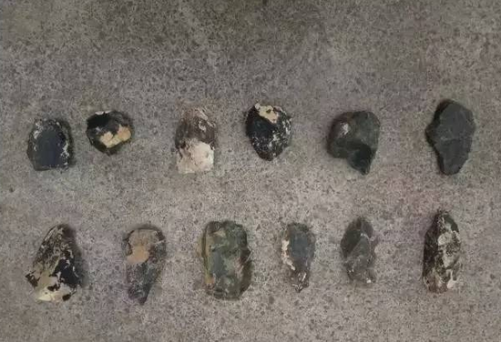 目前,考古人员在该遗址点勘探采集石制品标本300多件,主要分为磨制石器和打制石器。其中,出土大量旧石器时期石核、石片、刮削器、砍砸器、尖状器、人类下颌骨及动物骨骼残片等;采集新石器时期遗存涵盖砺石、石网坠、石斧、石砧等。