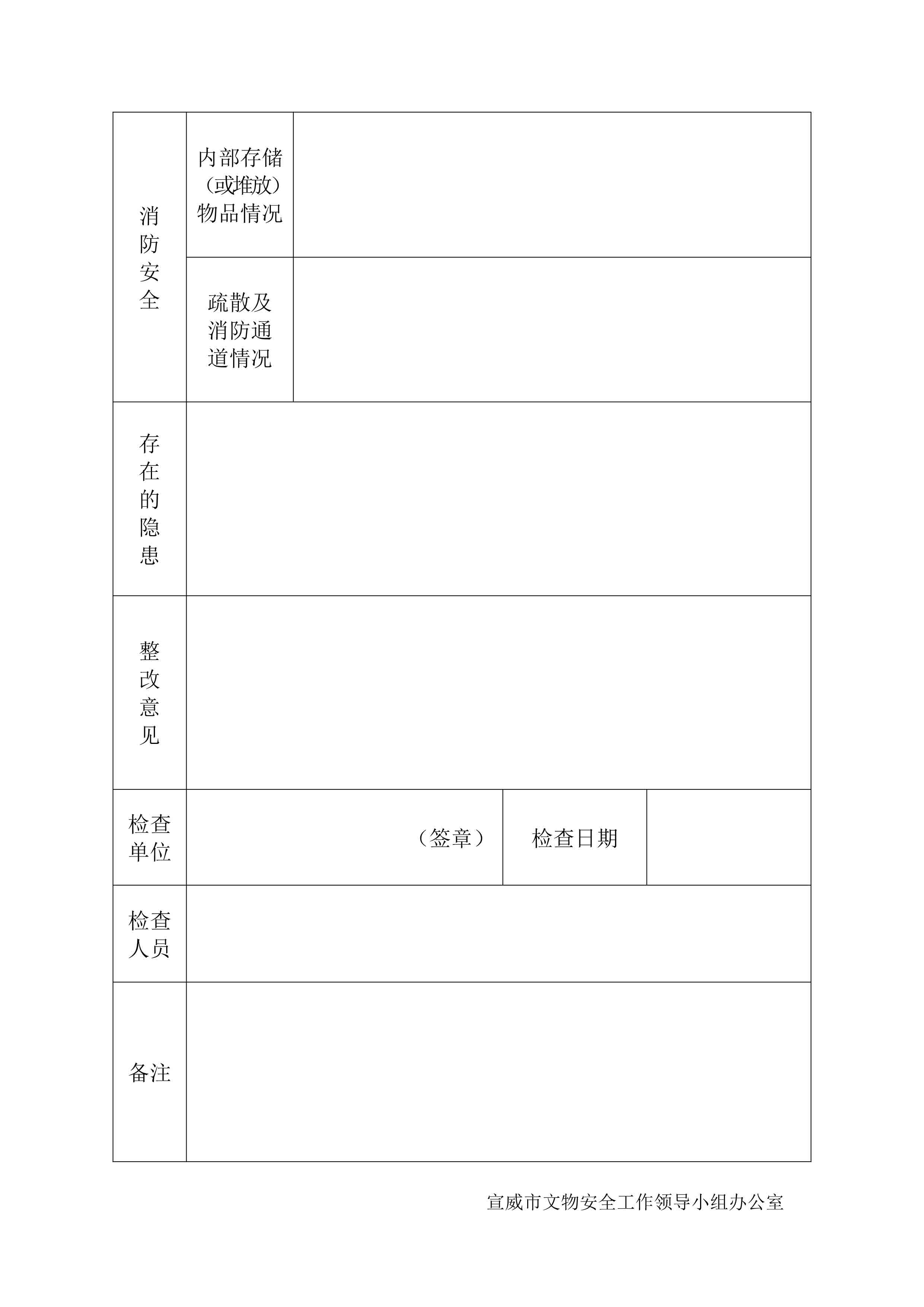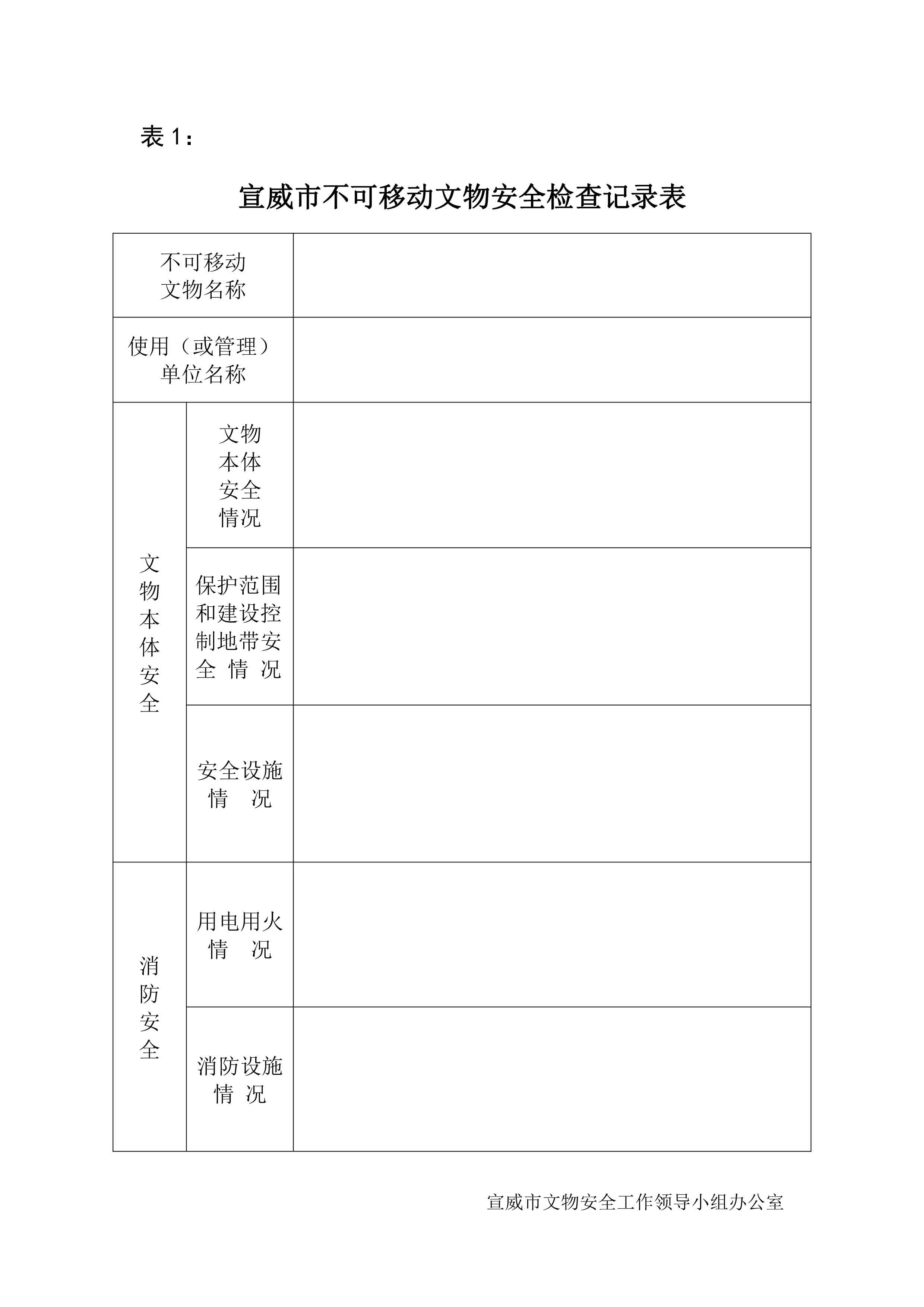 宣威市不可移动文物安全检查记录表