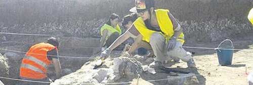 图为赵晓娴(中)在西班牙马德里市郊区Los Ahijones 旧石器遗址进行挖掘