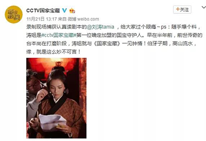 11月27日,中央电视台大型文博探索节目《国家宝藏》项目开播仪式在大厂影视基地举行。