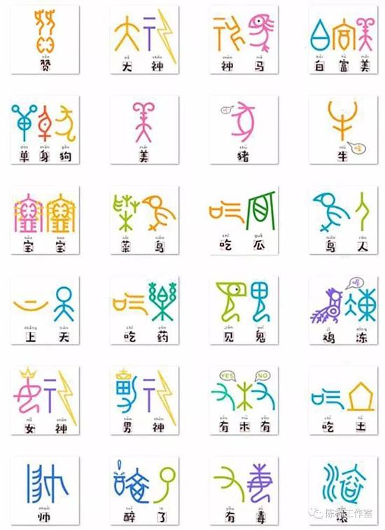 殊不知,甲骨文近来成了年轻人微信“斗图”的法宝,它们被“开发”成表情包,设计者是清华大学美术学院的教授陈楠。这套表情包展现了甲骨文的象形之趣,文字的结构之美。陈楠还设计了相关的衍生产品,比如甲骨文图案的手机壳等。