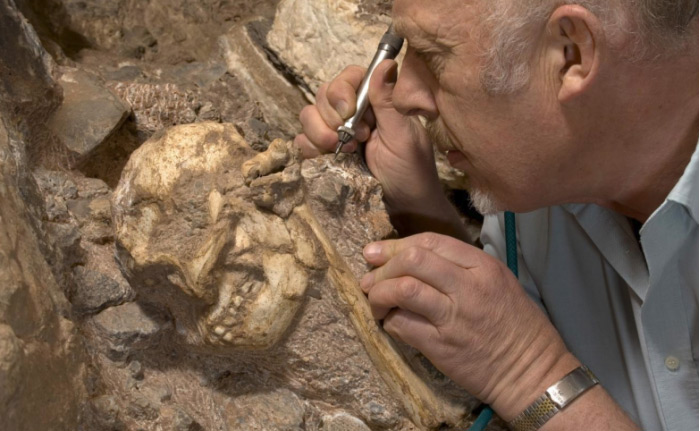 在20世纪90年代中期,化石骨架的一部分最初发现被矿工发现。在岩石中发现的骨碎片导致研究人员进入山洞,希望找到更多的化石证据。到1997年,研究团队发现了一些令人惊异的东西。在此后的二十年里,考古学家发现了整个骨架,将其从Sterkfontein洞穴系统中移除。