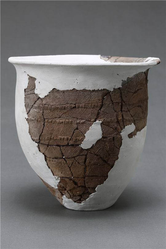 除了石器,先民还喜欢用陶器,一种掺入砂粒和其他碎末的“夹砂陶”很是流行。素面、绳纹为主的纹饰展现了他们好简朴的审美,此外,附加堆纹、弦纹、戳印纹又丰富了视觉观赏性。