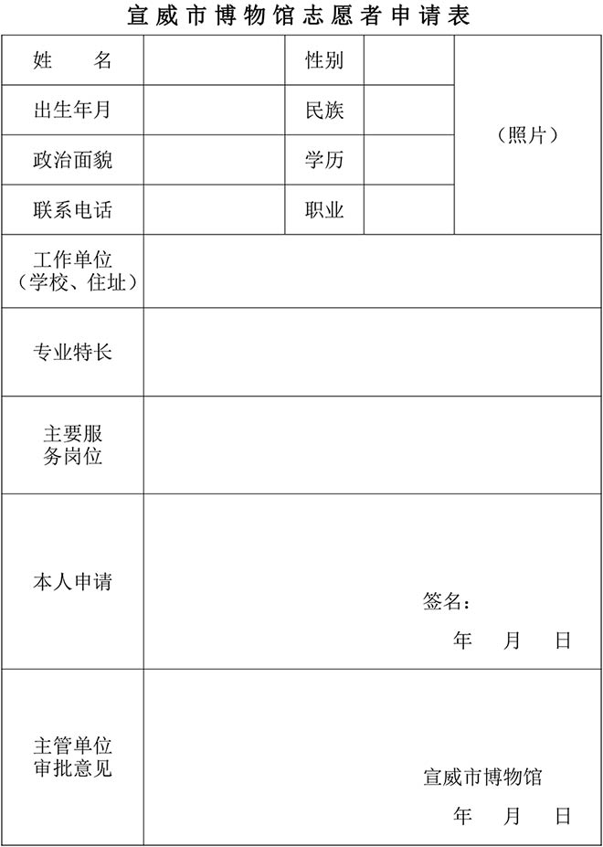 附件:宣威市博物馆志愿者申请表(如图)