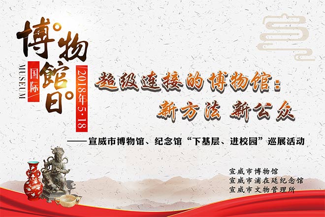 根据国家文物局和云南省文物局关于开展2018年度“5·18国际博物馆日”宣传活动的通知精神,经宣威市文化体育广播电视旅游局研究决定,由宣威市博物馆、浦在廷纪念馆、宣威市文物管理所联合举办2018年“5·18国际博物馆日”主题宣传活动和宣威市博物馆、浦在廷纪念馆 “下基层、进校园”巡展启动仪式。