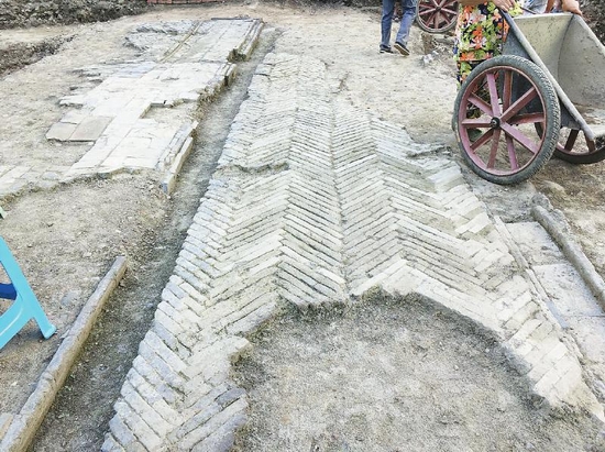 在考古工地西侧,南宋时期的一片房屋基址已清理完毕。6间房屋并立,每间约11至12平方米大小。考古人员在这片房屋基址和周边区域内发现了水缸以及罐、瓶、盏等各种生活用具的陶瓷碎片。考古现场负责人江滔说:“这应该是前店后坊式的一片建筑。”而在工地中部,一条长近50米的南宋道路也被清理出来。道路两侧,则是纵横交错、四通八达的砖砌排水沟。江滔说,这片遗址的排水沟大小与江南馆街接近,规格不大。根据沟渠走向,几处遗址的沟渠完全可以连在一起。