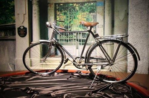 这辆名为“白金人”的自行车是霸州华夏民间收藏馆的镇馆之宝,它是1910 年生产于英国,当时只生产了100 辆,据说中国有10 辆。而目前世界上能够找到的也仅此一辆,甚至连其生产厂家都无保存。曾经英国的一位收藏家用一辆劳斯莱斯欲把这辆“白金人”换走,最终没能成功。这辆车历经100 年之久,至今仍保存完好,崭新如初,光彩照人。其通体镀银,充分体现出了当时先进的生产力。