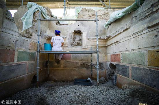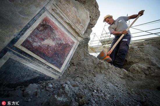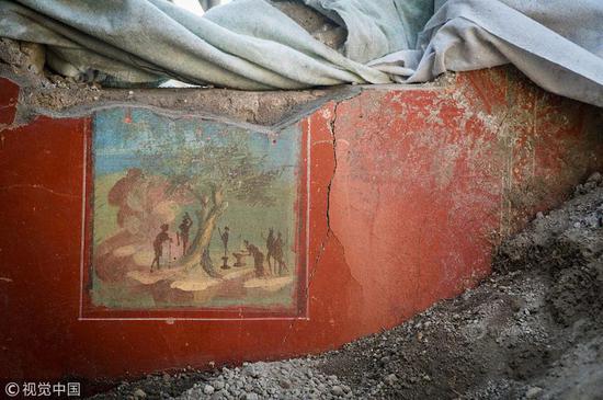 当地时间8月3日,考古人员日前在意大利坎帕尼亚庞贝古城遗址发现新的遗迹“丘比特之屋”。其中,人们还发现了几幅保存完好的壁画。庞贝古城在公元79年维苏威火山的喷发中被毁。