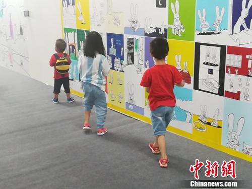 图博会上,孩子们在绘本墙“涂鸦”。上官云 摄