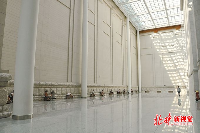 同国博一样,军博的座椅也非常少,一层大厅西南角、东南角、北门区域加起来超过五百平方米的空间,既非展厅,也非主要通道,除了靠墙的十余条木凳之外,全部留空。刚过十点,已经有不少游客坐在地上休息。