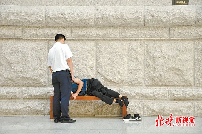 的确,记者在探访中发现,霸占座椅的行为很难管理:在军博,一位男士侧躺在座椅上小憩,工作人员上前制止,男子应要求坐起,但工作人员离开后,他又旁若无人地躺下了。