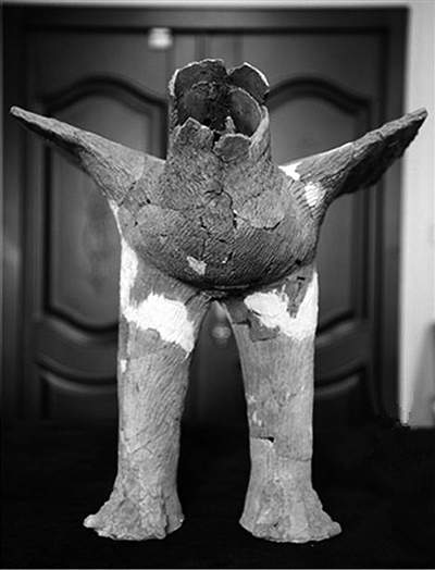 两年前,在皇城台出土了几个陶质的鸟类爪子残片,但不敢确认。“我说‘可能是个鹰’,可能是很早的陶俑之类的东西。因为红山文化就出过陶质的女神像和男神像,我们想着石峁可能也有。”邵晶说,第二年在同一位置又出土了几百个陶片,也找到了头、翅膀和尾巴,一年下来拼出了十几件鹰形的陶器,都是站着振翅欲飞的陶鹰。一些鹰的表面还能看到彩绘。这些鹰放在皇城台里有啥用?邵晶说:“这些陶鹰当时供奉在宗庙里。现在只能认识到这一步,随着发掘的深入,也可能会有另外一些陶塑形象出来,意义可能会更加明确。”