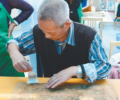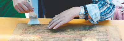 图为云南省图书馆古籍修复组组长杨利群老师为学员示范古籍修复。