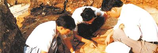 考古人员在清理“蕃”字石刻。