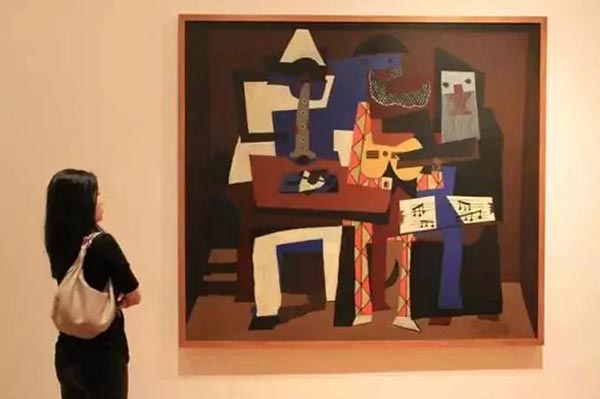 MoMA里的观众正在欣赏毕加索的《三个音乐家》