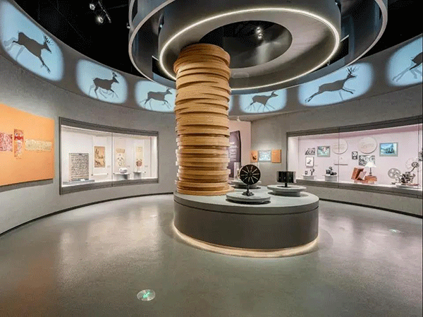 展厅还设置了走马灯、费那奇、小鸟入笼等互动游戏,大家转动转盘,透过小孔,就能感受视觉暂留所得到的连续播放效果。