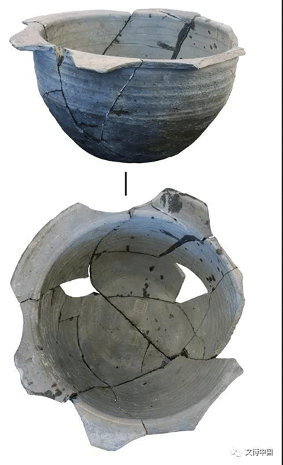 出土遗物主要有大量板瓦、筒瓦、瓦当、几何纹方砖等建筑材料,瓦制品尺寸较大,与汉长安城内宫殿出土者相当,显示出该建筑较大的体量与较高的规格。筒瓦制法明显有早、晚之别。在建筑倒塌堆积中发现一件底部有两个对称“萬石”戳印的陶盆以及四个陶量残件。