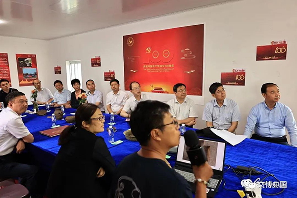 在揭牌仪式开始前,与会领导和来宾还参观了实践基地,听取垓下遗址考古队负责人、山东大学历史文化学院考古系王强做2021年度垓下遗址田野工作汇报,并参观垓下遗址出土文物临时展、临时考古党支部活动展。