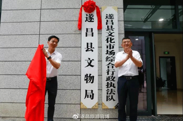 7月2日下午,在四川宜宾高县文化广播电视和旅游局增挂“高县文物局”牌子。该局的成立将加强高县文物保护,推进当地文物保护传承利用。