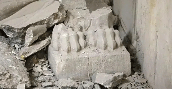 摩苏尔博物馆内,被战乱毁坏的雕像