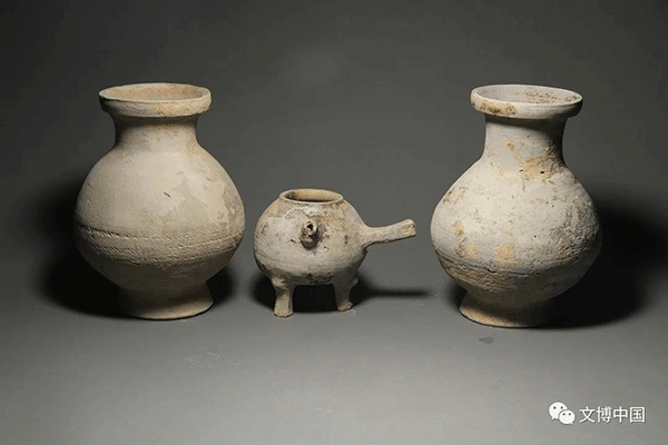 战国墓葬均为土坑墓,共计9座,其中M7、M8、M25存在打破关系,墓葬面积普遍较小,均低于3平方米,随葬品相对较少,仅有4座墓出土陶器,出土陶器组合为壶、豆、盆,少量墓葬出土铜铍、铜带钩;汉代墓葬大多数为土坑砖椁墓,共计47座,存在较高比例的并穴合葬墓,出土陶器组合大多数为2件陶壶或者2件陶罐,少量墓葬出土铜镜。