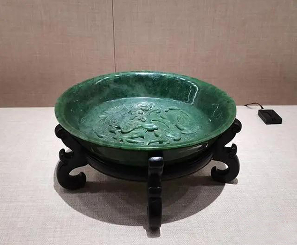 展品碧玉花卉纹果盘。 戚亚平 摄