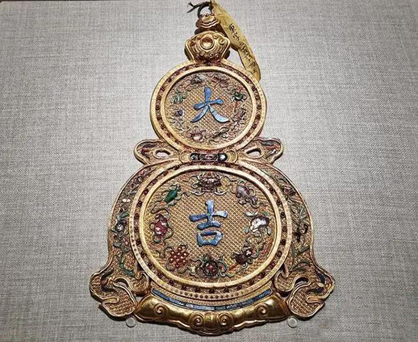 展品金“大吉”葫芦式挂屏。 戚亚平 摄