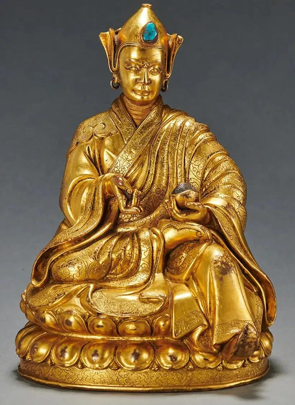 17世纪红铜鎏金嵌宝石莲花生大师像之一 暂定三级文物 罗征 摄 国家文物局供图