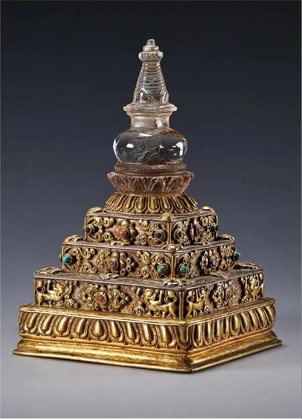 民国铜鎏金水晶嵌宝石供养塔 暂定三级文物 罗征 摄 国家文物局供图