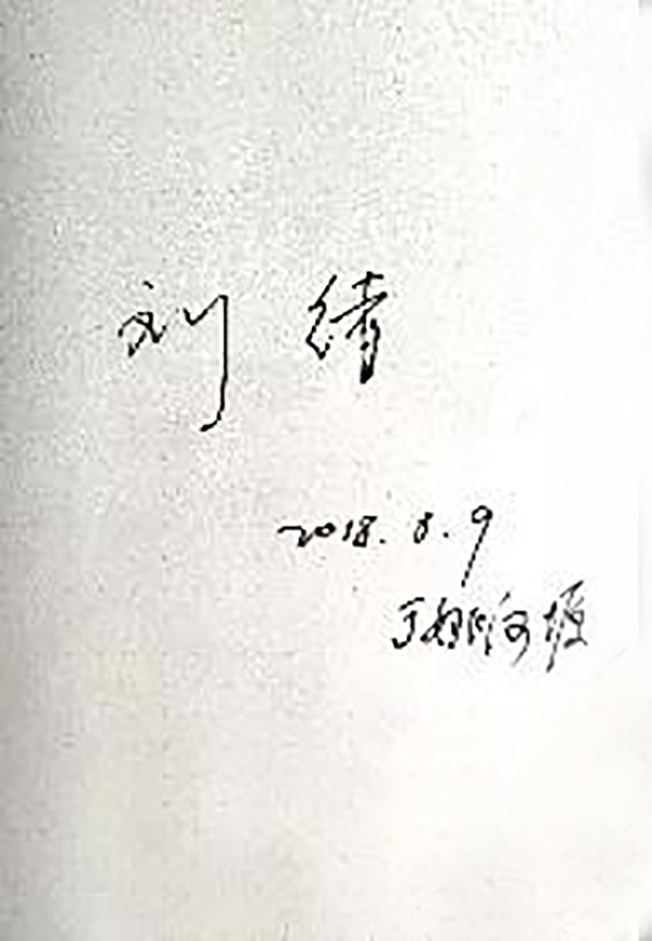 刘绪先生给学生的签名(陈珂尧提供)