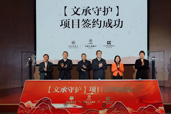 为深入贯彻落实习近平总书记关于文物工作的指示批示精神,山西博物院近年来进行了一系列探索和实践。作为“首批全国博物馆文化产品示范单位”及“首批全国博物馆文化创意产品开发试点单位”,山西博物院与中国工商银行山西省分行及CC卡美珠宝开展合作是充分落实《关于进一步推动文化文物单位文化创意产品开发的若干措施》的重要举措。近年来,中国工商银行将文化产业作为重点支持领域,开展“文化+金融”融合创新服务体系的有效探索。本次三方合作旨在助力我省文化产业发展,加强文化与金融之间的协同合作,拓宽服务领域,彰显文化底蕴,坚定文化自信。未来,三方将充分发挥在各自领域内的资源优势和专业优势,立足市场需求,聚焦文物资源活化利用,在传统文化与金融结合、特色文创产品开发、社会公益文化推广等方面开展积极探索与合作,共同弘扬中国传统文化,促进文化艺术繁荣发展。